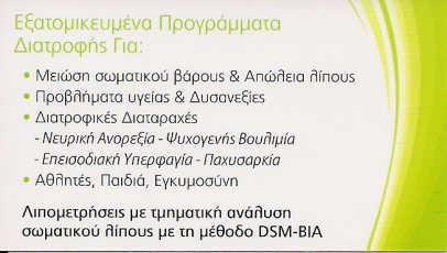 Διατροφικές διαταραχές, νευρική ανορεξία, παχυσαρκία, βουλιμία, λιπομέτρηση, ρύθμιση βάρους, παθήσεις για παιδιά - εγκύους - θηλάζουσες - αθλητές